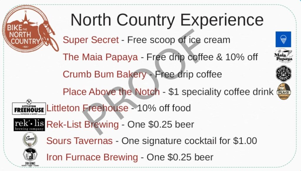 For a $50 donation to Bike the North Country, you’ll get a fantastic north country experience with a value of over $400 which includes: